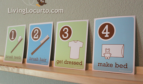 http://www.livinglocurto.com/2009/08/school-morning-routine-free-printable-cards/